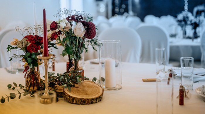 We create a unique visual identity that reflects the couple’s taste through color palettes, lighting, and floral arrangements.